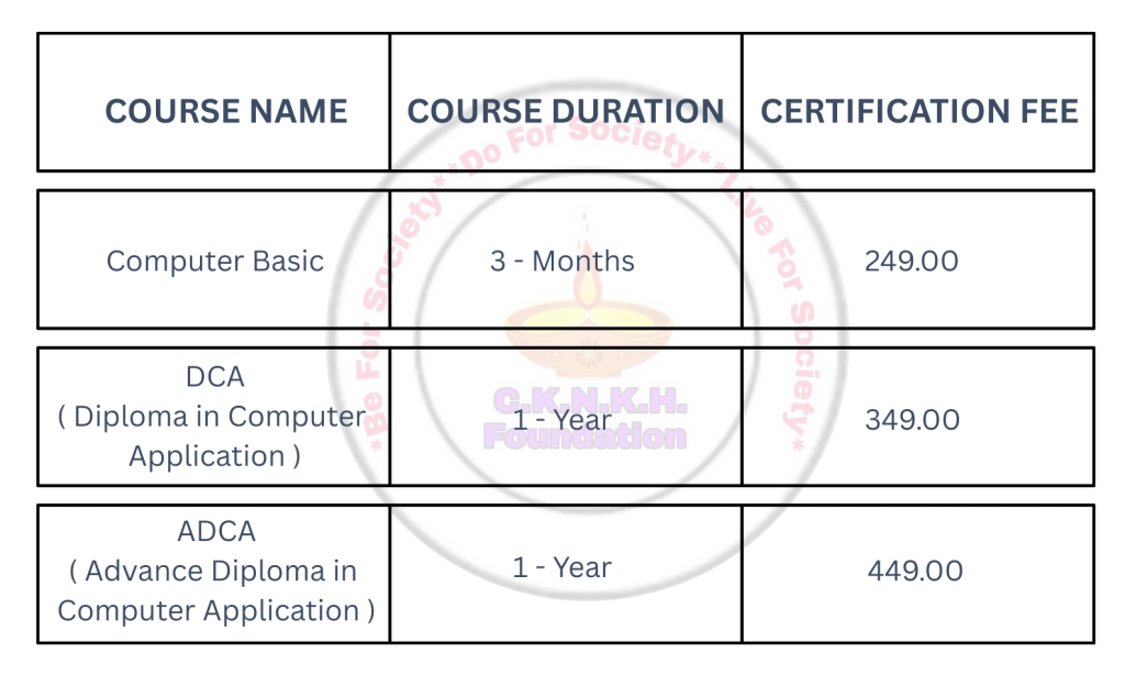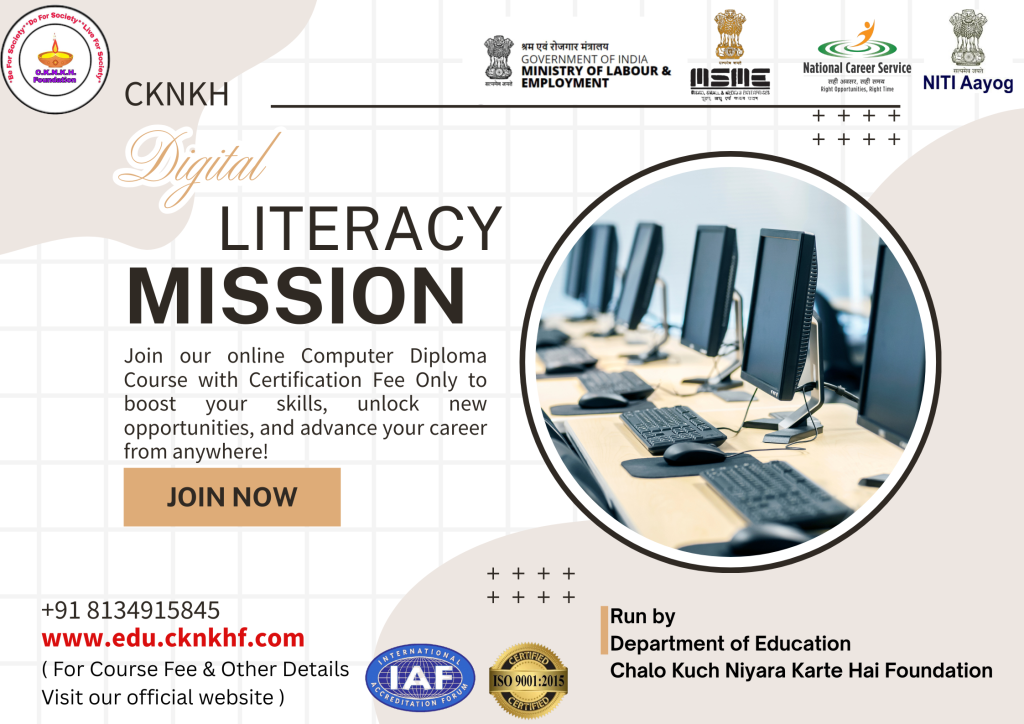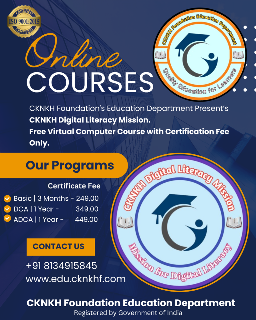 CKNKH Digital Literacy Mission, Empowering through education: Learn computer skills affordably. Pay only the certificate fee and enhance your digital expertise with us.