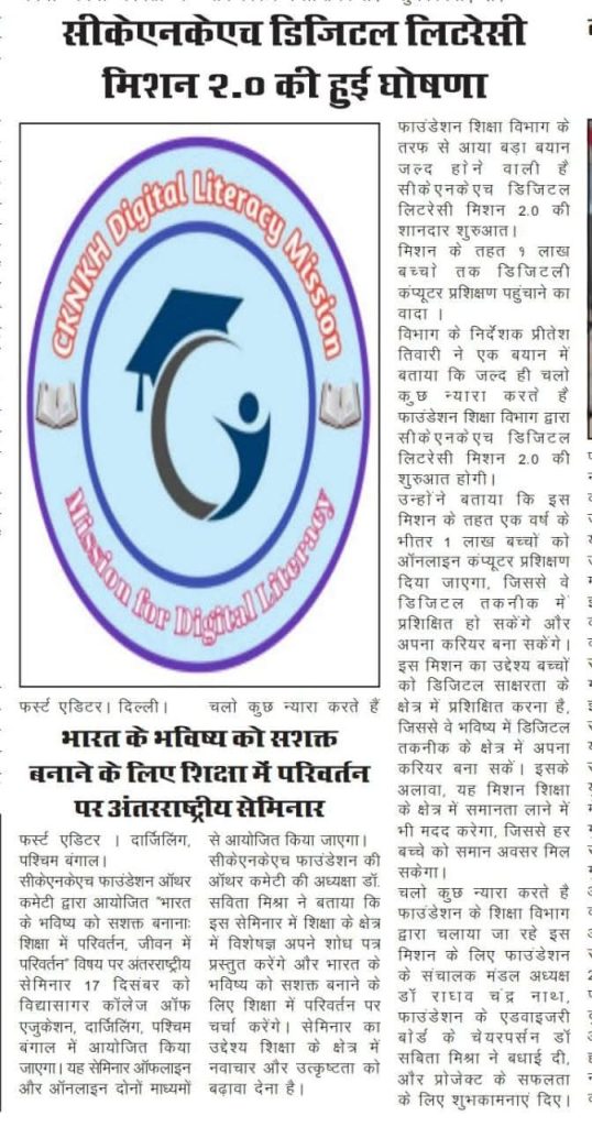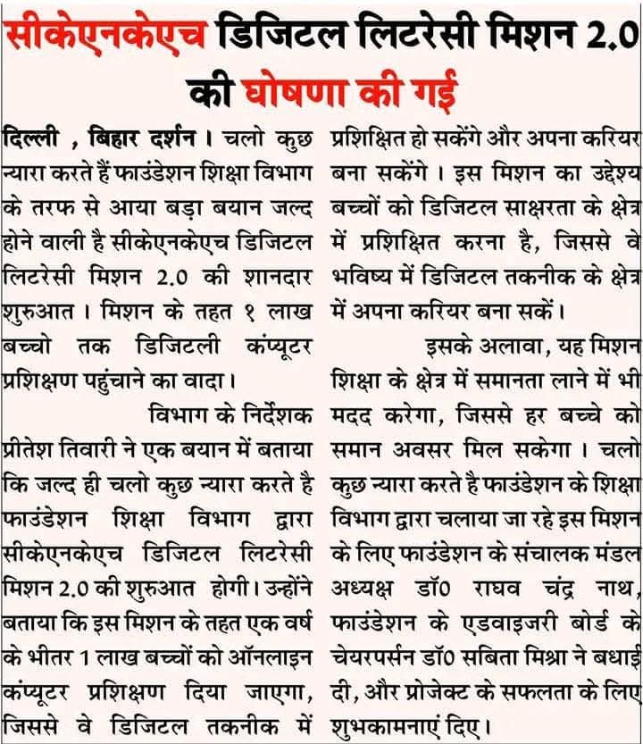 Shri Prittesh Tewari, Director of the CKNKH Foundation Education Department, is committed to providie free Digital Computer Training to 100,000 children over the course of a year, thereby empowering them with essential digital skills and significantly enhancing their career prospects. According to the Director, the primary objective of this mission is to furnish children with digital literacy, effectively bridging the existing educational disparity and ensuring equal opportunities for all.